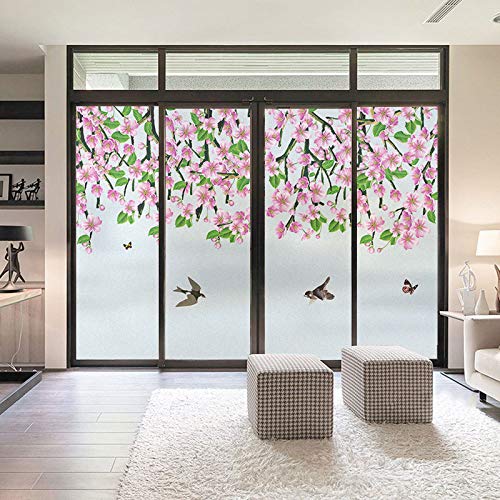 Decortive Bird and Flower Frosted Window Film Static Cling Non Adhesive Stained Glass Sticker UV Blocking Heat Control Window Film for Bathroom Home Kitchen Office 31.5"x49.2"(80x125cm)